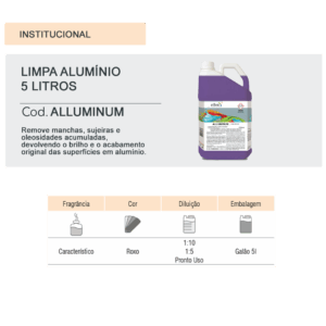 Remove manchas, sujeiras e oleosidades acumuladas, devolvendo o brilho e o acabamento original das superfícies em alumínio.