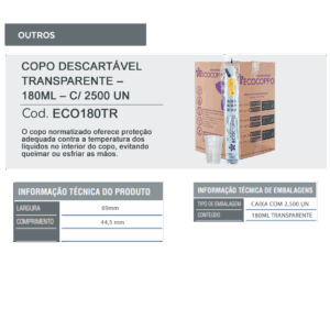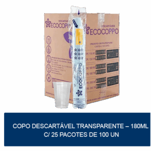 Copo Descartável Transparente 180ml – caixa com 2.500 unidade
