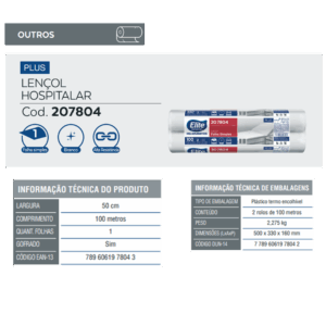 Lençol Descartável sem picote, possui dois rolos de 100m cada.
