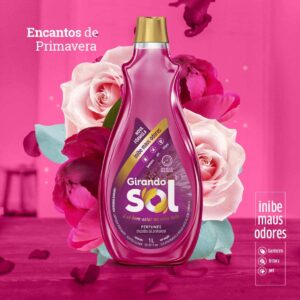 O Limpador Perfumado Girando Sol combina agentes de limpeza com fragrâncias de perfumaria fina e inspiradas na natureza. Suas moléculas de perfumação inibem os maus odores de banheiros, pets e frituras, deixando na casa toda uma sensação de limpeza e bem-estar.