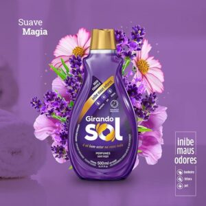 O Limpador Perfumado Girando Sol combina agentes de limpeza com fragrâncias de perfumaria fina e inspiradas na natureza. Suas moléculas de perfumação inibem os maus odores de banheiros, pets e frituras, deixando na casa toda uma sensação de limpeza e bem-estar.