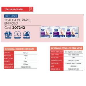 O Papel toalha EXCELLENCE em rolo folha tripla possui coloração extra branca, maior maciez e super absorção. Foi desenvolvido para quem busca um produto premium de alta performance e máxima qualidade aliado a rendimento.